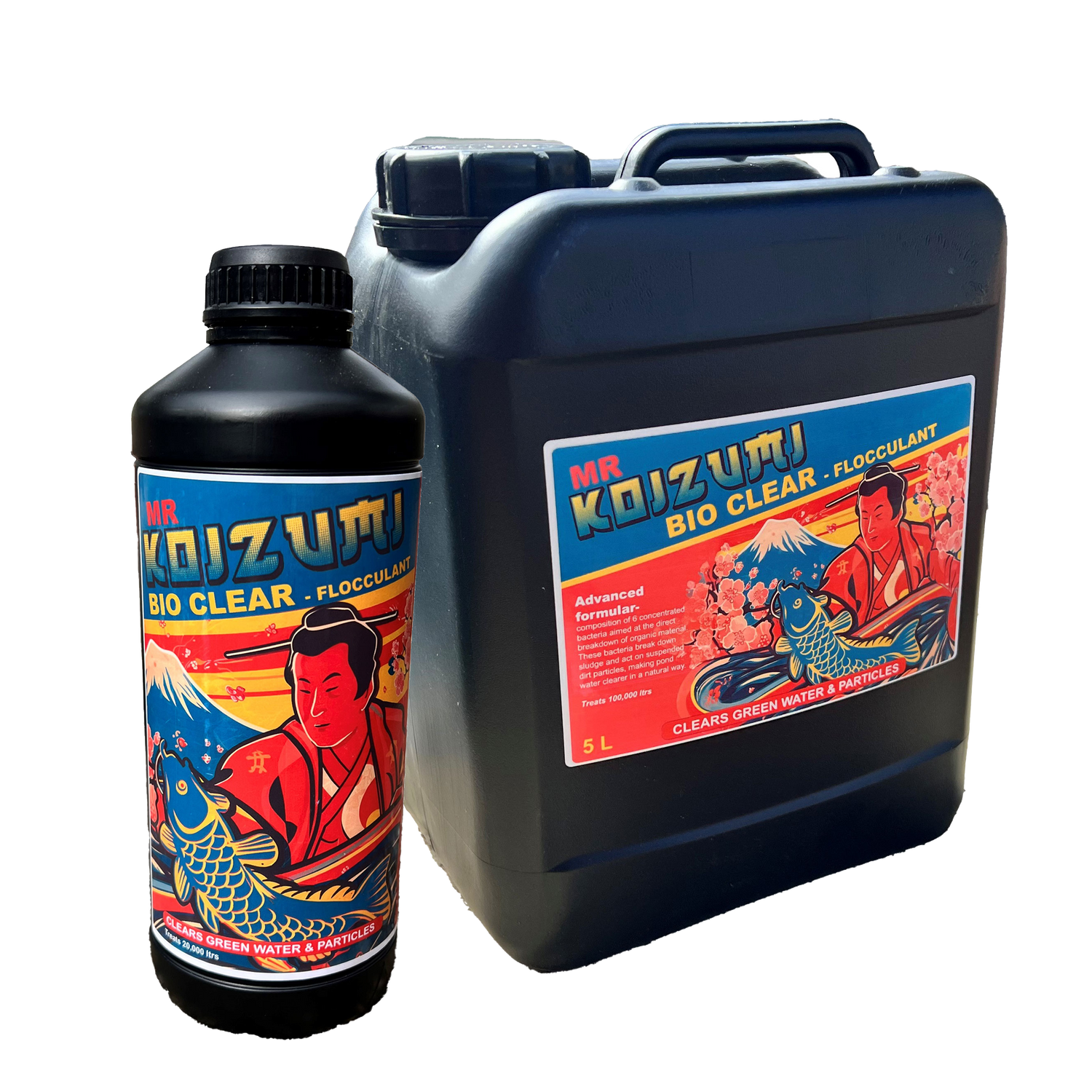Mr Koizumi “BioClear” contains a composition of 6 concentrated bacteria aimed at the direct breakdown of organic material. These bacteria break down sludge and act on suspended dirt particles, making pond water clearer in a natural way. Additionally, Bioclear bacteria consume the same nutrients that algae need to grow, reducing the risk of algae blooms and green water. Bioclear can also be added to the pond filter to prevent blockages, improve water flow rate, and reduce maintenance frequency.